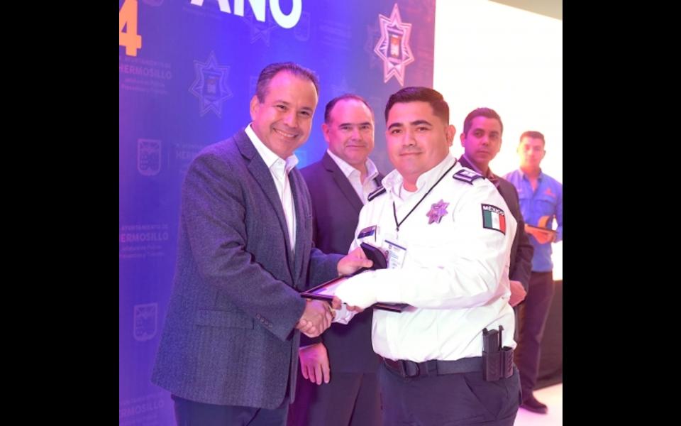 Acompañado por Manuel Emilio Hoyos, comisario de la Corporación y Víctor Hugo Enríquez García, secretario de Seguridad Pública del Gobierno del Estado de Sonora resaltó la importancia de este evento en el que por primera vez un elemento del departamento de tránsito municipal obtiene dicho reconocimiento anual.