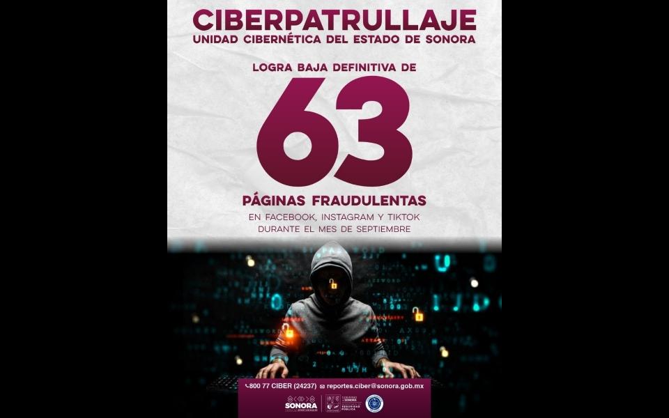 El Gobierno de Sonora logró la baja definitiva de un total de 63 páginas fraudulentas mediante labores de ciberpatrullaje en las principales plataformas de redes sociales Facebook, Instagram, TikTok y páginas de internet, durante septiembre del presente año.